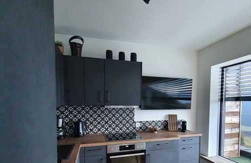 The apartment is fully equipped - kitchen with baking oven, stove, microwave, Nespresso machine, drip coffee maker, fridge, freezer, dishwasher... or the two bathrooms with heated towel rack, hairdryer... or the utility room with a washing machine, dryer, vacuum cleaner, cleaning equipment... Four Flat-TVs in the bedrooms and the living room round up the superior equipment.