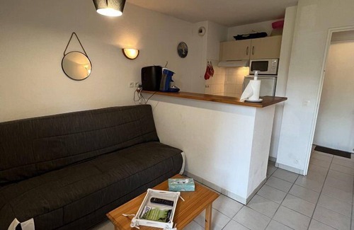 In a holiday residence with swimming pool, just 800m from the Naïades beaches, this semi-detached house of around 43m² comprises on the ground floor a bright living room with a fully equipped American kitchen area, a WC, a small storage room and a beautiful terrace. Upstairs, you will find two bedrooms, one of which has a balcony, a bathroom and a separate WC. An exterior of approximately 40 m² equipped with garden furniture. House equipped to accommodate young children. 2 parking spaces. Deposit to be paid on site.