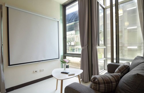 Step into an inviting 1-bedroom, 1-bathroom open space apartment designed to accommodate up to 3 guests. The fully equipped kitchen sets the stage for culinary adventures, while the projector cinema promises an immersive entertainment experience. With a designated office space, it's perfect for both work and leisure. Ideally located just 1.5 minutes from Taipei City Hall MRT, your Taipei getaway offers convenience and comfort in one delightful package.
