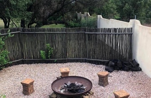 Spacious property in the heart of a free roaming Big Five Game Reserve only an hour away from OR Tambo Johannesburg International Airport. 5000 square metres of delightful walled in garden for your privacy and safety. An awesome deck overlooking a waterhole. Your own pool, 8 seater spa bath, pizza oven, a choice of wood fired or gas barbecues or do a roast in the Weber. Wake up early for a guided game drive in an open Safari vehicle or stay up late to stargaze around the fire in your private boma.