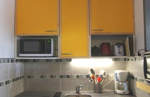 The residence Les Mélèzes, of 8 floors with lift, is located in the resorty of L'Alpe d'Huez. It is idealy situated 100 m from the ski slopes of Les Bergers and 400 m from the ski school. The resort center is situated 1 km from the residence. You will find the commercial center of Les Bergers 210 m from the accommodations. Surface area : about 25 m². Ground floor. Orientation : South. Living room with pull-out sofa (80). Sleeping area with single bed (80), 2 bunk beds (80). Kitchen with kettle, coffee machine, oven, oven / microwave, toaster, fridge. Shower room with towel-dryer. WC. Balcony. The beds in elevation are not suitable for children under 6 years.