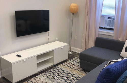 Dream location, this updated 2bedroom apartment is only 20 minutes to Midtown Manhattan. Professionally decorated this modern apartment will make you feel like home. You will enjoy all the amenities like tv, wifi, fully equipped kitchen, etc. The area is super safe, there is a supermarket only 2 blocks away, stores and restaurants walking distance. Bus stop is only steps away from the apartment.