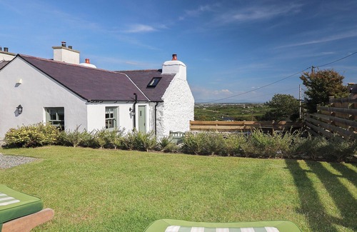 Living room 2: 40" Freeview Smart TV, DVD Player. Oil central heating, electricity, bed linen, towels and Wi-Fi included. Initial fuel for multi-fuel burner included. Highchair. Welcome pack and doggy extras.. Enclosed terraced garden with patio, garden furniture and BBQ. 1 small dog welcome. Private parking for 2 cars. No smoking. Please note: There are a number of steps in the garden. The charging of electric and hybrid vehicles is not permitted at this property.. Gloriously positioned on Holyhead Mountain, affording sweeping views of the harbour, the famous breakwater and the Snowdonia mountains beyond, this traditional, detached cottage is one of the oldest properties on the mountain. It is bursting with charm, has traditional features and a beautifully kept enclosed terraced garden, perfect for sitting out on a summers evening and taking in the superb panoramic views. This charming holiday home is ideally located to enjoy wonderful scenic walks and cycle trails to the mountain summit right from the doorstep.