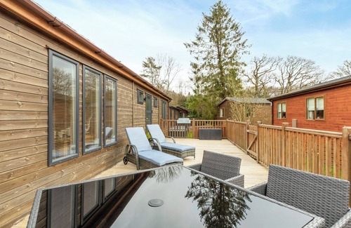 Stylish two-bed lodge in sought-after White Cross Bay with partial lake view, sunny decking, modern amenities, and access to pool, bar, and Lake Windermere. Ideal South Lakes getaway.. 6 steps to entrance.