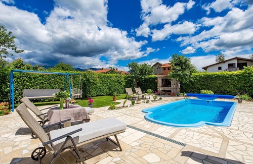 These two simply furnished holiday flats on the upper floor (roof pitch approx. 105 cm) are located near Rijeka, in the village of Draice. Both have two bedrooms, a living area with a small kitchen and a bathroom. The shared pool offers pure refreshment and swimming fun. There is a communal barbecue and a covered terrace on the fenced plot. Take advantage of the numerous opportunities for an active holiday: Grobnik motorbike, horse riding, paragliding in nearby Tribalj, wakeboarding and ski lift on Krk.