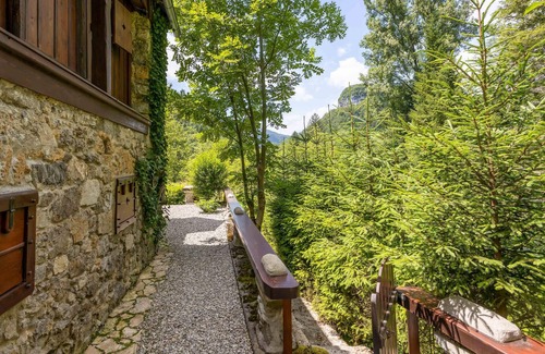The idyllic location by the river offers you an oasis of peace and relaxation. The rustic ambience of the house, characterised by wood and stone walls, gives your stay a special touch. Individual and solid wooden furniture emphasises the unique character of the house. The tastefully furnished interiors create a warm and inviting atmosphere in which you will immediately feel at home.