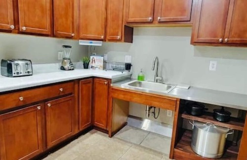 Casa Caballo is a two bedroom Duplex (Single Level) with many amenities for your use. A kitchen with accessible stove and sink. Conveniently located near Tucson Airport-6 Min and Raytheon-7 min. Downtown 14 min. Fast WIFI and dedicated work space. Comfortable living area with 60 inch TV and Reclining sofas. A Privacy fenced yard with outdoor dining provides a great place for large families. In-Unit Washer and dryer included. The property was designed with accessibility for guests in need