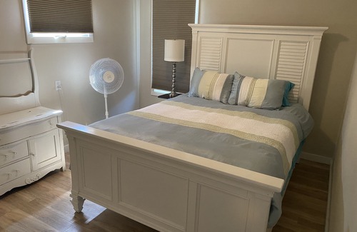 The laid-back Coach House Loft is located on 50 feet of Crooked Lake shoreline and has 3 bedrooms and two full baths and sleeps 6 (7 if one or more are children). It has recently been gutted and completely remodeled with quartz and marble countertops, new high-end appliances, all new bathrooms, and a washer and dryer. There is an 8 X 21 deck for dinner, grilling, or relaxation with peeks of Crooked Lake through the trees. There is a waterfront fire pit for roasting marshmallows, bikes for cruising the newly paved bike trails, and a 48 foot dock for fishing, boating, or enjoying sunsets. Crooked Lake waterfront is shared with one other rental cottage, and there is plenty of room for everyone. New furniture has been installed. Most of the living area is on the second floor, so an ability to climb stairs is necessary. We only rent from Friday to Friday during the summer high season (June 30- August 11). Need more room? Rent the 1 bedroom, 1½ bath cottage on the same property for a larger family gathering. During month of July and August the beach area gets some weeds so we do tell people it’s not a swim beach. But LOTs of sandy sandbars on lake and state park is only 1 mike away on Lake Michigan. There are 4 large fresh water inland lakes you can access From our dock known as the chain of lakes. This area is a vacation wonderland: bring your boat, or rent one nearby to cruise the inland waterway to Pickerel, Burt, and Mullet Lakes. Or if you’re adventurous, go all the way to Cheboygan and Lake Huron. Golf at some of the finest courses, shop the cute boutiques of Petoskey, Harbor Springs, Charlevoix and Bay Harbor. Taste the wines and beers in our rapidly growing vineyard and microbrewery businesses. Spend the day on Mackinac Island. Enjoy the music and cultural events at the Bayview Association. Spend a beach day at Petoskey State Park or Sturgeon Bay. Try your luck at the Odawa Casino or attend one of the numerous summer festivals in area communities. Hop on the recently finished paved bike trail a few blocks away and travel to nearby communities. Petoskey is 5.1 miles away and Harbor Springs is 7.3 miles from our property.