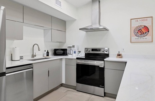 NEW SALTWATER POOL. Heated to 82 degrees starting March 28th A stylish experience Centrally located 6 minute drive to downtown! Sleeps 7, Newly remodeled, Mid-Century Modern decor and fully fenced yard. New furniture. Dining area & large breakfast bar, living room & hangout nook. 2 Master bedrooms w/en-suite bathrooms! Large European style kitchen; stainless steel appliances and quartz countertops. 1 car garage and laundry machines.