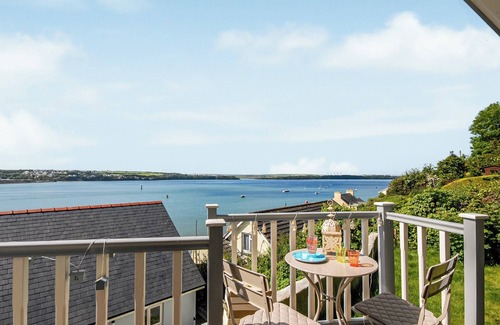 Separate Toilet.. Gas central heating, gas, electricity, bed linen, towels and Wi-Fi included. Travel cot and highchair available on request. Grounds with patio, summerhouse, sitting-out area and garden furniture. Barbecue. Parking for 3 cars. No smoking. Please note: There are 16 steps from the parking area to entrance. There are 22 steep stone steps set over to flights of stairs in the garden.. Set in the ancient waterside village of Llanstadwell looking out over the broad tidal sweep of the waterway. Skillfully designed to maximise the glorious Waterway views, the house is designed with elegant bedrooms on the first floor and an open plan kitchen/dining room and living rooms on the second floor. Beautiful, panoramic views can be enjoyed from the delightful summerhouse, a perfect vantage spot to sit and relax and watch the ever-changing Haven Waterway. Furnished to the highest standards and complimented by the excellent decor - the attention to detail throughout creates a wonderful self-catering cottage. Luxury fitted kitchen, with wine fridge, and a dining area with fantastic views. The elegant lounge has an oil burning stove perfect for cosy nights. Doors from the lounge open into a small study from where there is access across a bridge to the rear lawn. Follow the steep stone steps up from the lawn to the summerhouse.
