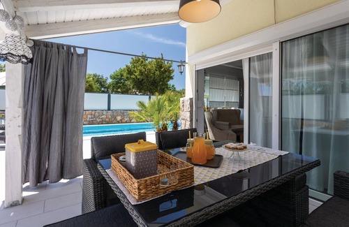 This elegantly furnished holiday home with pool is located in the village of Korni, on the island of Krk. The comfortable interior is spread over two floors, with the living area on the ground floor and the bedrooms on the first floor. Pamper yourself by the pool in this Mediterranean setting and relax until you feel ready for more activities: find your favourite attraction here: the island offers various cycling routes, and at Dunat, the first nearby beach, partly sandy, you can try wake boarding at the ski lift, sailing, surfing and beach volleyball. Many restaurants offer a first-class gastronomic offer, ideally accompanied by a glass of Vrbovaka lahtina, a high-quality, dry local white wine.