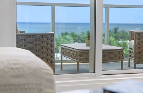 The Roney Palace sits oceanfront and in the lap of luxury, in the midst of the glitz and glamour of South Beach–separate from, but sharing amenities with The 1 Hotel & Homes, a world-class 5-star resort. Located steps from the beach, this 3 bedroom well-to-do serviced apartment makes for a perfect extended romantic getaway or family vacation for those who enjoy urban beach living among the finer things in life. The pool and beach scene are fantastic places to enjoy your time while staying in this private residence.