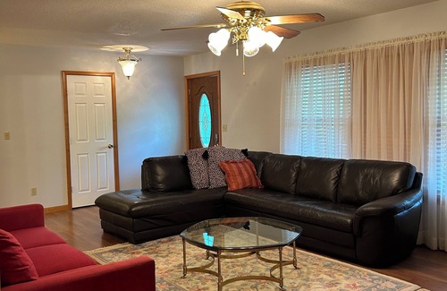 Enjoy a peaceful stay at this enchanting 3-bedroom, 2 full bath, 2 car garage single family rambler in Honesdale. Easy living designed for handicapped access. Nestled in the heart of the city, this tranquil retreat offers a superb escape for guests. Minutes to main street Honesdale, shopping, museums, train ride, and antique stores. The bedrooms are thoughtfully designed with a king bed, a queen bed, and twin beds, ensuring a comfortable night's sleep in all sizes. Full 8 seat dining room, gas fireplace living room, fully supplied kitchen, sunroom with exercise area, 2 car garage and open basement for your recreation. Mountain landscape with an abundance of wildlife. Near lakes and rivers with fishing and boating. Near Irving Cliff Gibbons Park, Veteran's Park and golfing. Local directory left in home. With amenities like central AC, WiFi, a washing machine & dryer, a hair dryer, curling iron, clothing iron and board and full cleaning tools, your every need is taken care of. Immerse yourself in the serene ambiance of this enchanting property, where you can relax and rejuvenate. It's easy to see why you'll be able to unwind at our place. Gas fireplace and gas grill included with stay. Deer, hummingbirds, groundhogs, and forest wildlife roaming the area. Because of this wildlife, children must be supervised. Full front porch with seating and plenty of space to walk, take pictures and reflect. You will be contacted with key information upon reservation. Contact me for any questions, I take long term rentals. Very clean- NO PETS/NO SMOKING.