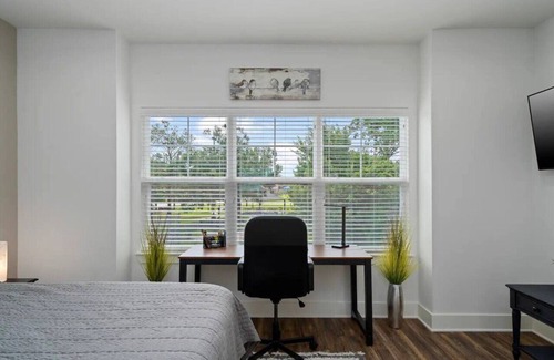 You will love the spacious Primary Bedroom. Upon entering and experiencing the tranquil park view, you will instantly be transported to a place of peace! The room has lots of natural light for you to enjoy in the morning. The plush king sized bed is the highlight in this room with a Lightweight Coverlet Modern Style Stitched Quilt Pattern Bedspread and Silky Soft Hotel Bedding to keep you warm and cozy. Additionally, there's a 50"Amazon Fire Smart TV with free Sling TV for your lounging enjoyment!