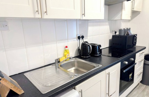This ground-floor flat offers easy accessibility for all guests, featuring a single-level layout. There are several free parking spaces available on the premises. Step into a spacious, fully fenced private garden from the living room, complete with dining furniture for your enjoyment. The flat includes a fully equipped kitchen and a dining table that seats four. Unwind in the living room while watching Netflix on the Smart TV.