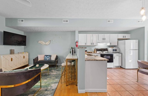 Apartment 3 features 2 bedrooms on the second floor, one with a king bed, the other with a full and a twin bed, and a queen bedroom on the first floor, allowing the home to accommodate up to 7 guests. 2 full bathrooms.