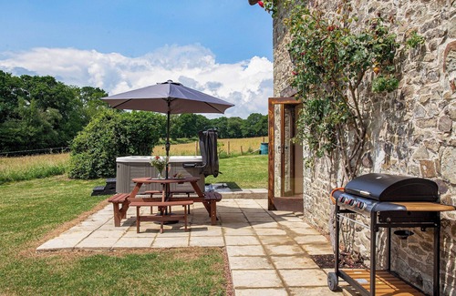 Bathroom: Bath With Shower Over, Toilet. Oil central heating, electricity, bed linen, towel and Wi-Fi included. Travel cot and highchair. Rear enclosed garden with patio, sitting-out area, garden furniture and barbecue. Hot tub (private). Private parking for 4 cars. No smoking.. Pondmead is a beautifully presented four-bedroom thatched barn conversion, peacefully located on a working farm in a rural setting near the West Devon village of Monkokehampton. Set amidst attractive rolling Devonshire countryside with glorious views of Dartmoor National Park in the distance.
