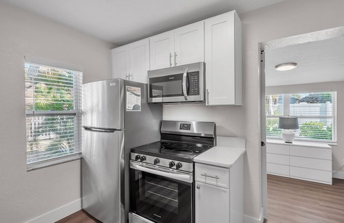 Located in the heart of Treasure Island, you'll find yourself just a short stroll from the beautiful beach, perfect for sunbathing and swimming. Explore nearby attractions like the historic Fort De Soto Park, John's Pass Village and Boardwalk in Madeira Beach, or venture over to Tampa for a day to check out the Florida Zoo, Florida Aquarium, Hard Rock Casino, Busch Gardens and more!