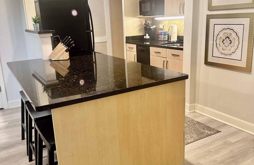 This stunning downtown Atlanta condo has been completely renovated and newly furnished creating a clean and contemporary living space ideal for guests travelling for both business and pleasure. The open-plan living area features beautiful modern furniture, a flat screen TV and a fully-equipped kitchen with modern amenities, new granite countertops and bar seating for you and your guests to enjoy home cooked meals.