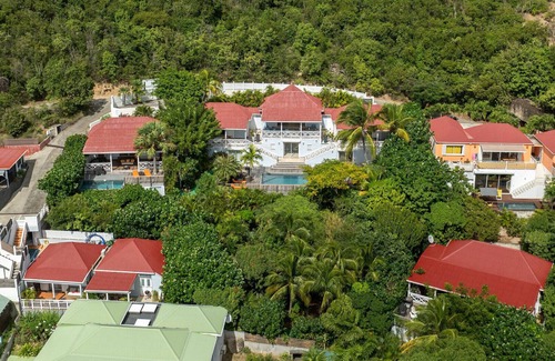 SAINT LOUIS ESTATE is a complex of two Caribbean-style villas located in Corossol in front of a splendid view over the ocean and the sunsets. Comfortable and well furnished, the vacation rentals HABITATION SAINT LOUIS and PETIT SAINT LOUIS connect through the tropical garden and accommodate up to ten guests in an idyllic scenery of palm trees and local shrubs.