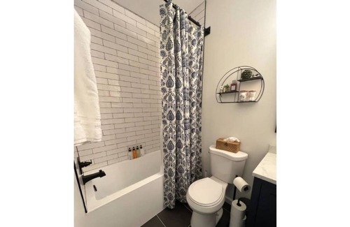 Beautiful and well-appointed home just minutes from downtown Greenville. Brand new furnishings and a fully outfitted kitchen in a quiet, peaceful environment. Luxury sheets and bedding await you for a comfortable night's sleep and you'll find lots of handy amenities throughout to ensure a pleasant stay. This home is 1435 square feet with 3 bedrooms and 2 full baths. The master bedroom has a king bed, walk in closet, large dresser, and an ensuite bathroom. The second room has a queen bed, large dresser and step-in closet. The third room has a twin over full bunk bed system with an additional full size trundle bed underneath! All of the beds are equipped with USB chargers and white noise systems with soothing sounds that will lull you to sleep. There are spare iPhone and Android cables you can borrow if you left yours at home and there are several computer lap pads in the closets for browsing in bed. The bathrooms are loaded with amenities - shampoo, conditioner, shower gel and lotion, plus hand soap, Q-tips, cotton rounds and room spray. There's a small living room area with a 50" Roku TV, some board games and puzzles, and a collection of books for your reading pleasure. There's also a dining room with a table that seats 6, but you can pull in the large padded bench from around the corner to seat 7 if necessary. The kitchen has pretty much anything you need to make a great meal, with an air fryer/convection/toaster oven, a Ninja Pro blender with smoothie containers for on-the-go breakfasts, and high-quality pots, pans and cutlery. There's a full spice rack, avocado oil and balsamic vinegar, and coffee and tea with sweeteners and half-n-half pods. There's a drawer with plastic baggies and foil, and an assortment of storage containers for leftovers. And there's a set of cleaning supplies under the kitchen sink. The main hallway has a laundry closet with a washer and dryer, laundry soap, dryer sheets, an iron/ironing board, and a cordless stick vacuum for quick spills. There's a nice patio deck overlooking the back yard with a dining set for 6 and a gas BBQ grill. This home was designed with the guest in mind and we've done our best to cover everything we think would make your stay wonderful and easy.