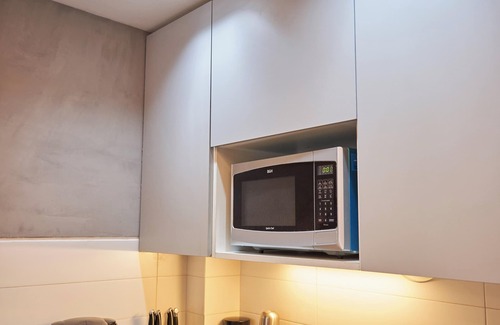 There is a small dining area as with a bar style table and four Italian bar stools. The condo has been designed with those in mind who might wish to prepare their own meals. Palermo Soho has the best dining in the city, but you'll appreciate the large kitchen and ability to make your own meals if booking a longer stay.