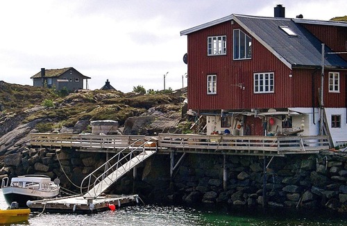 This dock house is nicely situated by Buksnesfjorden, 2 km northeast of the fishing village Ballstad in Lofoten. This renovated fish processing facility, is today a great apartment for sport fishers wanting to fish in rough environments. The apartment is one of two apartments on the second floor, simple but charmingly furnished. The living room and the terrace has a great view of Buksnesfjorden. The ground floor has a storage room for your fishing equipment and for preparing fish. This room also has a sauna where you can relax and warm yourself after exciting fishing. A common laundry room with apartment 39224. The dock outside has chairs and tables where you and your fishing companions can plan your next trip. The fjord outside the apartment is rich with fish. An 18 ft boat with 10 hp motor and 5 life jackets is available for rent per week or NOK 800 per day. A Bellcraft self-draining boat with 100 hp, sonar, chartplotter, gps and 4 rodholders is available for rent. The boat must be pre-ordered. The boat is tied to the dock by the house. In the dock house is a fish cleaning table with running water and lighting. 600 liter freezer. The apartment has a satellite dish with many international channels, of which many are German. 2,5 km to a charming restaurant in Ballstad. 11 km to Leknes, the unofficial capital of Western Lofoten, with many restaurants and shops. Visit the many famous fishing villages of Lofoten. The Fishery Museum in Kabelvåg, has a big collection of old boats and fishing equipment. Right by is a gallery and aquarium. Free wireless internet. Big parking lot. Comfortable mattresses. The boats must be preorderd.