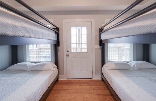 6 Queen and 4 Twin beds. Modernized with everything you’ll need for your stay. Close to Nulu, Bardstown Rd, Downtown & Frankfort Ave. Quality touches - Jacuzzi brand hot tub, fire pit w/benches & a Weber Propane Gas Grill. Enough chairs in kitchen to seat everyone for meals. LARGE sofa with 3 TVs. Bunk beds were selected with adult weight capacity, comfort & safety in mind: 400lbs per twin bunk level and 2,000lbs per queen bunk level. No parties or events.