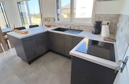 Contemporary villa with sea view in Plouhinec - large spaces, near beaches, accessible for people with reduced mobilityWelcome to Plouhinec, in a magnificent contemporary villa with sea view over the Bay of Audierne, designed to offer you comfort, space, and accessibility. Located just 500 meters on foot from the Mesperleuc and Kersiny beaches, this modern house from 2020 is ideal for family vacations, with friends, and suitable for people with reduced mobility.A spacious, accessible villa bathed in lightDesigned with your well-being in mind, this bright, spacious house offers vast living spaces, both inside and outside. Each room is generously sized, and the layout facilitates movement, including for people with reduced mobility.Interior - comfort and space for the whole familyGround floor:Large living space with living room, dining room, and open kitchen – a friendly space, perfect for family gatherings.Equipped kitchen: induction hobs, oven, microwave, dishwasher, coffee maker, kettle, toaster.1 bedroom with a 140 x 200 cm bed, private bathroom adapted for people with reduced mobility.Independent bathroom with wheelchair-accessible hand-washing area.Floor:3 spacious bedrooms with sea view:1 bedroom with 160 x 200 cm bed1 bedroom with 140 x 200 cm bed1 bedroom with 2 single beds 90 x 200 cm. 1 relaxation area.Large bathroom with bathtub, shower, and separate toilet.Exterior - a privileged setting with sea viewLarge garden with panoramic view of the Audierne BayEquipped terrace: garden furniture, barbecue, sun loungersLandscaped petanque courtPrivate parkingWasher, dryerFree WiFiThe luxury of space in the heart of Cap-SizunThis villa combines the elegance of contemporary architecture with generous spaces, offering a stay focused on relaxation and comfort. Enjoy the large spaces, immediate proximity to the sea, and the charm of southern Finistère.Book this sea view villa in Plouhinec now: space, comfort, accessibility and beaches on foot!