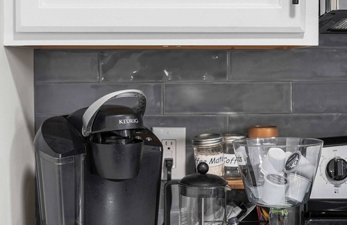 As you enter this home, you will find a comfortable living room with a smart TV for you to enjoy movie nights with friends and family. To the right, you will see a fully stocked kitchen with a coffee area where you will have all of your caffeinated needs. Additionally, you will see a small dining area and a washer and dryer for your convenience. As you go into the bedrooms, you will see two bedrooms each with a Queen sized bed. There is also a desk for anyone working virtually. Finally, there is a fenced in area in the back for you to enjoy a nice day with friends and family.