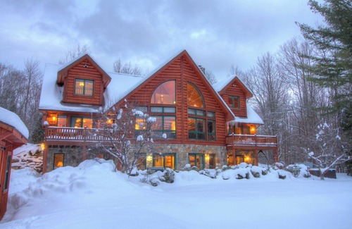 Fresh wood fragrance. All details in the house crafted with love. Privacy and nature. Great amenities and location. This luxury log home is situated on twenty acres and has everything you need to make your vacation one to remember. The estate has 10 bedrooms which sleep up to 28, surrounded by forest and close to the best Vermont has to offer. Swimming pool, lake access, hot tub, sauna, two entertainment rooms, a game room, and a fire pit, and AC in every room. Perfect for large families, a group of friends, or a corporate retreat, we know you will love this home!