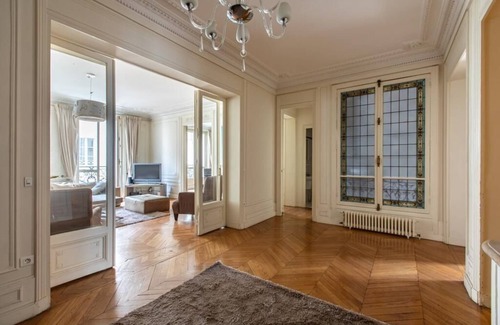 Ideally located in the heart of Champs Élysées, this stunning apartment, with four bedrooms and double living room, brings the best of Paris to your doorstep. This Paris's chicest district is famous for its prestigious shops where big international luxury brands are displayed and where most visited monuments, like Arc de Triomphe, Petit Palais, and Grand Palais draw connaisseurs. The moment you walk into this charming apartment, you will feel home, relaxed, and far away from the city's bustle.