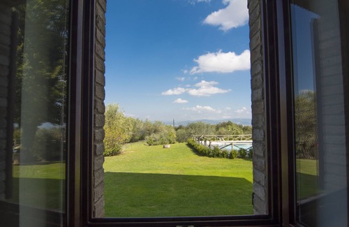 Nestled among gardens and olive trees, both apartments have their own gazebo for outdoor dining and barbecues where you may catch a glimpse of colorful pheasants roaming through the garden as the sun begins to set. A few steps from the house, there is a swimming pool to enjoy those beautiful summer days.