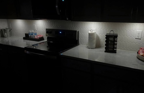 This retreat blends comfort and luxury at Positive Vibes Home, just 5 minutes from Atlanta Airport and 12 minutes from downtown. Every room exudes style: a plush sectional, vibrant pillows, and bold artwork make the living room cozy. The kitchen’s quartz island, high-end appliances, and artful nook unite form and function. Bedrooms and bathrooms with luxe linens, marble finishes, and rainfall showers offer pure sanctuary. Upstairs, the main suite and lounge complete this perfect escape.