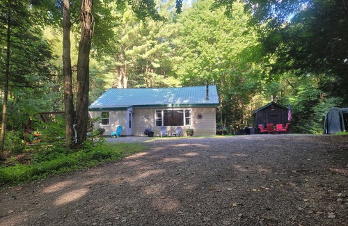 The cottage is equipped with pretty much everything you would need for cooking and the beds are all ready for a good night sleep with black out blinds. On the cold night there is a cozy wood stove to keep you warm or on the hot nights enjoy air-conditioning in the bedrooms. There is a loft with 2 cot mattresses and a couple air mattresses that kids really enjoy. The bedroom with 2 twins can also be made into a king bed if that fits your needs better