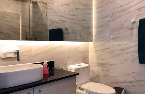 This 43.24 sqm 1 bedroom apartment has been designed to give a modern feel throughout the room. The apartment is fully furnished with modern bathroom, dining space, modern kitchen and a queen-size bed connecting to the balcony with a beautiful sea view.