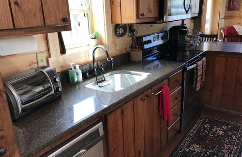 This adorable sparkling clean little cabin has everything you need for a comfortable stay. With its vaulted ceilings, tasteful décor and gorgeous year round mountain views, you won't be disappointed if you choose to stay at the "Sparrows Nest". The bedroom has a queen size bed, flat screen TV and a picturesque view of the mountains and the patio garden from the window. The bathroom has a full-size walk-in shower and lots of soft towels and plenty of hot water, and a washer and dryer. The kitchen has full-size stainless appliances: oven/stove, microwave, dishwasher, toaster oven, and refrigerator with ice maker a Keurig and regular coffee pot. There are plenty of cookware, dishes and utensils and a breakfast bar with comfortable stools. The living is cozy with a space to read or watch TV. Step out onto the lovely covered deck to enjoy outdoor dining, a glass of wine or your morning coffee. Relax in the patio/garden and listen to the songbirds and sound of the bubbling water fountain or sit by the fire-pit to enjoy the beautiful night skies at the end of the day. Downtown Asheville and the Biltmore Estate are only about 12-14 minutes away. The NC Arboretum and Blue Ridge Parkway are also close by. Lots of hiking and mountain biking trails, rafting and Zen tubing are only about 15 minutes so you can enjoy the mountain experience. Asheville Outlets, Discount Shoes and lots of brewers and unique restraints and art stores are just minutes away as well.