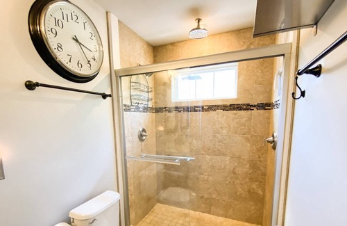 Book the Retreat's multiple levels with 7 bedrooms and 5.5 baths. The Gem side's chef's kitchen is an entertainer's dream complete with a pizza oven, massive island, two dishwashers and a commercial grade glass front refrigerator and beverage fridge. The kitchen opens to a large family room and out onto a multi-level deck and courtyard with outdoor fireplace and extensive hardscape. The Gem side of the home has 4 bedrooms and 3 full baths. The Bungalow side is connected with a double-sided lock through the main entry hall, has a new kitchen and 3 more bedrooms and 2.5 baths. The home's 2 sides can also each be be booked separately.
