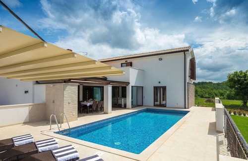 One of the bedrooms is located on the ground floor and offers direct access to the terrace and pool area. The remaining 2 bedrooms are located on the 1st floor, along a terrace with beautiful views of the surrounding countryside. The ground floor also houses an open-plan bright living-dining-kitchen area, as a lovely place to share a meal with your family and friends. The indoor jacuzzi, as an additional relaxation addition for you, is located right next to the living area, surrounded only by glass walls. These can be opened to the outside as you wish. If you prefer the outdoors during your holiday, the terrace with beautiful views offers a communal area with an outdoor dining option and barbecue for your use. Right next door, you can relax by the magnificent pool, whether you prefer swimming or just sunbathing. For guests who fancy other types of entertainment during their holiday, Villa Mala Halu offers a pool table and table football as entertainment. If you prefer to be more active in nature, the villa offers 4 bicycles (2 large, 2 small) which you are welcome to use to explore the beautiful surroundings.