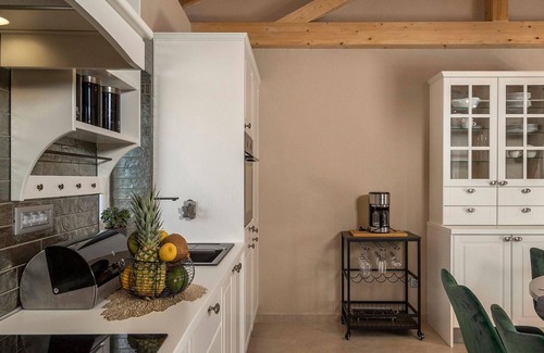 You will be comfortably accommodated in 3 bedrooms with double beds (160x200) and ensuite bathrooms with showers. The villa also has a living room that includes a sofa, which serves as a bed for two extra people, a table and a TV. Next to the living room is a modern and fully equipped kitchen where you will be happy to prepare delicious meals for the whole family, and the dining room with dining table offers 8 seats.