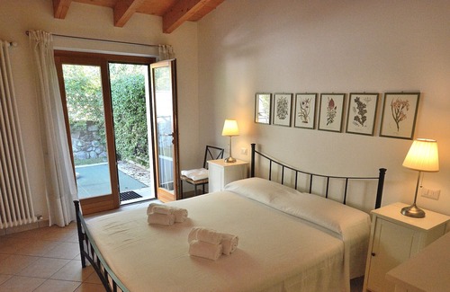 The apartment, tastefully furnished by the owners, can accommodate up to 4 guests in two separate bedrooms and offers an exclusive terrace where you can rest while reading a good book in peace but also enjoy an aperitif or dinner while admiring the lake and the famous and unmissable sunset.