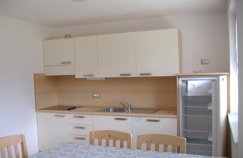 Layout: Kitchenette(fridge), Living/diningroom(TV(satellite)), bedroom(double bed), bathroom(shower, washbasin, toilet, bidet), washing room, ski storage(shared with other guests), garage, terrace(shared with other guests), garden(shared with other guests), parking