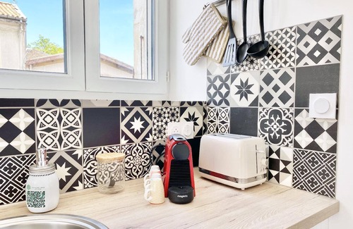 160 cm bed with high comfort mattress, Linen provided (sheets, towels and kitchen towels), Fully equipped kitchen to cook like at home (dishwasher, induction hob, microwave-grill, Nespresso, kettle...), Comfortable dining area, Free high-speed Wi-Fi, 104 cmTV with Netflix, Office area, Bathroom with large walk-in shower, Secure building with digicode, Independent entrance and exit (code lock)
