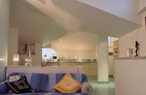 The Blue House is located on the top floor of the prestigious Villa Oleander on the Gulf of Poets (between Lerici and San Terenzo). It borders the Golf Club Marigola and the eighteenth-century Villa Marigola that make the area very green and silent. Accessed by a private road with a gate. Including the place for a car and bicycles or scooters in the parking lot of the entire property.
