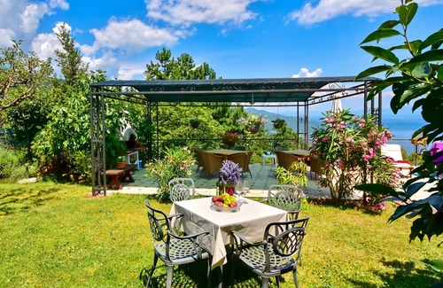 Tuliševica 5 km from Lovran: Apartment house "Laurus". Above Lovran, in the hamlet Tuliševica 8 km from the centre of Opatija, in a quiet, sunny position on a slope, 6 km from the sea, 6 km from the beach, in a cul-de-sac, in the countryside. For shared use: property 1'100 m2, lawn 200 m2, trees, swimming pool round (4 m diameter, depth 120 cm, seasonal availability: 01.May. - 15.Oct.). Terrace (30 m2), garden furniture, barbecue, children's playground (slide, swing). In the house: internet access, central heating system. Parking at the house on the premises. Shop 500 m, restaurant 1 km, bus stop 550 m, pebble beach 6 km, rocky beach 6 km, public bathing area 6 km. Tennis 6 km.