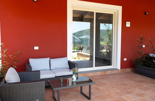 Experience the passion behind locally produced wines and oil through tastings available upon request. The property offers modern comfort in a peaceful setting just minutes from the beach, perfect for couples seeking serenity in nature. Public transportation is nearby for easy access.