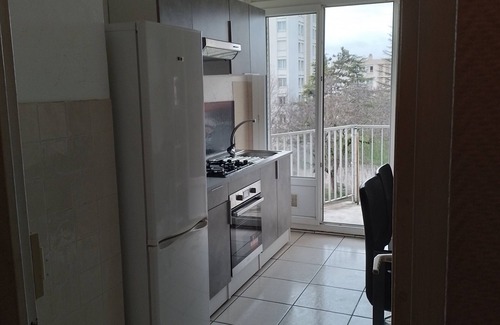 Clean and furnished T3 apartment on the 3rd floor located in Vaulx-en-Vélin Village 300 meters from the National School of Architecture, ENTPE and the Town Hall of Vaulx-en-Vélin. Close to shops and well connected (buses pass there every 10 cities). Has 5 wall cupboards and 2 clothes cupboards, shelf, a gas stove. fridge freezer, microwave, coffee maker, kettle, gray bread, and kitchen utensils.