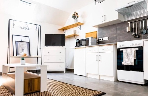 Located in Serris, this 1-bedroom, 1-bathroom apartment lets you experience it all. Fans of nature and the outdoors will love being 7 minutes by foot from Parc des Commons and 1 minutes by car from La Vallée Village. Val d'Europe Shopping Center is an easy 14-minute walk away and SEA LIFE Val d'Europe is also a quick 14-minute walk away.