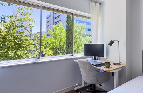 DARIÉN is a cozy and bright apartment, fully furnished, a few meters from the Instituto de Empresa. It is an urban oasis thanks to its beautiful community garden.With an area of 50 m², the apartment has a fully equipped kitchen with new appliances. All rooms have air conditioning through ducts, as well as high-speed WiFi (min. 1GB) and Smart TV, which guarantees a comfortable stay both for living and for teleworking.