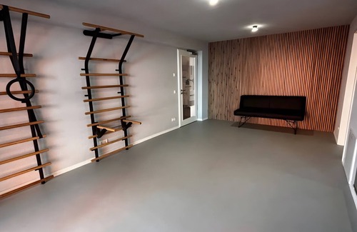 Located in Tübingen, this 37 sqm apartment accommodates up to 4 guests and features 1 bedroom and 1 living room along with 1 bathroom. You will find a fully-equipped private kitchen, Wi-Fi, private television, private dedicated workspace, and floor heating throughout the entire apartment. Additional amenities include shared washing machine, shared clothes dryer, shared gym and fitness equipment, and convenient self check-in.